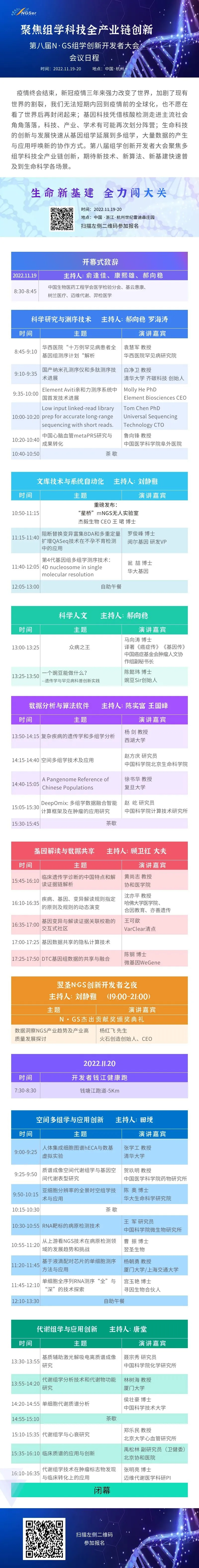 由基云惠康、中国生物医学工程学会医学检验工程分会主办的第八届 N·GS 组学创新开发者大会开幕在即,将于 2022 年 11 月 19-20 日,在中国杭州举行。