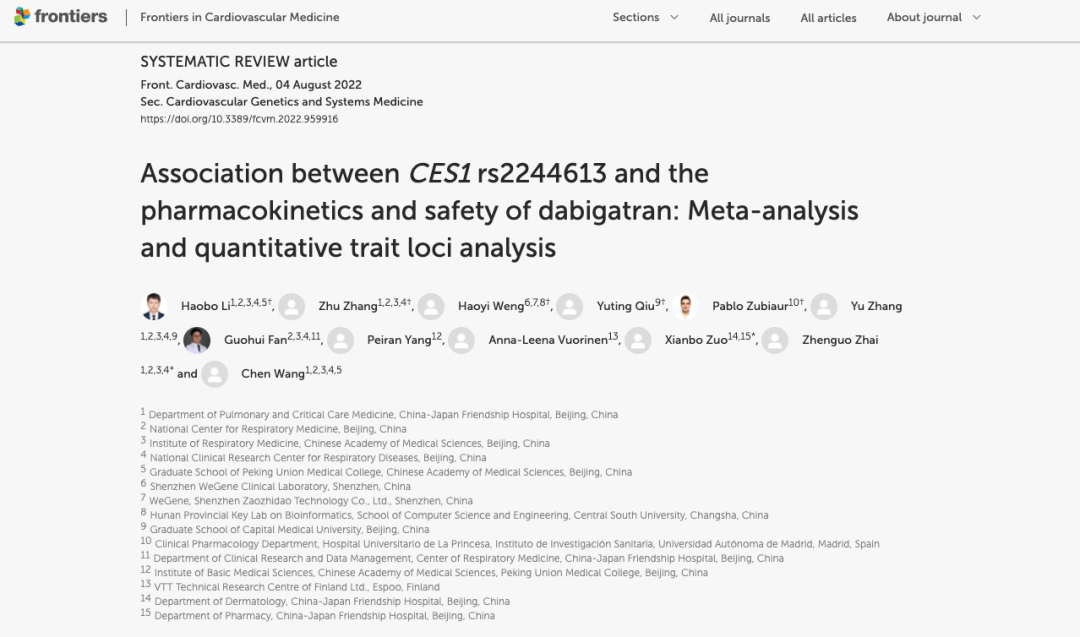 近日,由中日友好医院王辰院士、翟振国教授为首的中日友好医院肺血管病团队,携手微基因WeGene、首都医科大学、马德里自治大学、北京协和医学院等团队,共同发表了