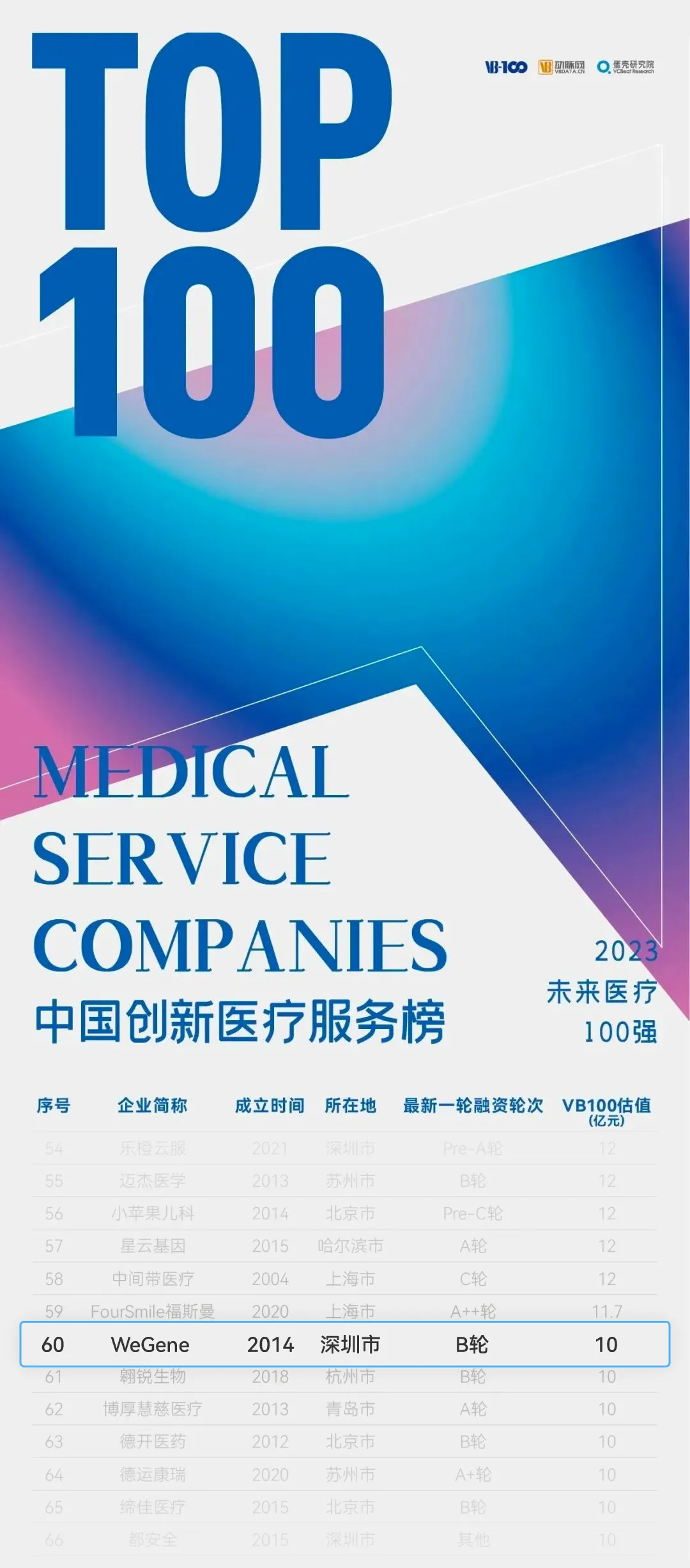 WeGene 荣登「中国创新医疗服务榜」 TOP 100。